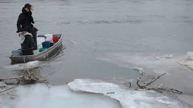 This temporary action took place on the 19th of December 2013 along the Missouri river in Nebraska City, which is about fifty miles away from each plant. The intervention consists of a performance scooping up the water from the river to lower its level.